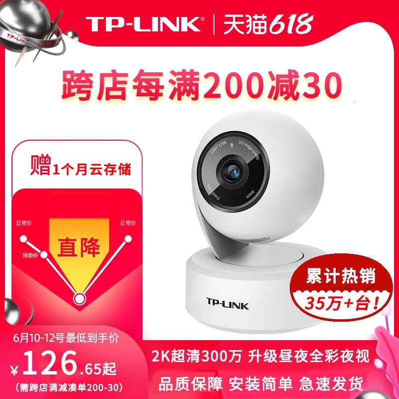 【急速发货】TP-LINK无线摄像头wifi网络小型室内监控器家庭室外监控TPLINK高清全景家用夜视360度连手机远程热门设计联盟服务商