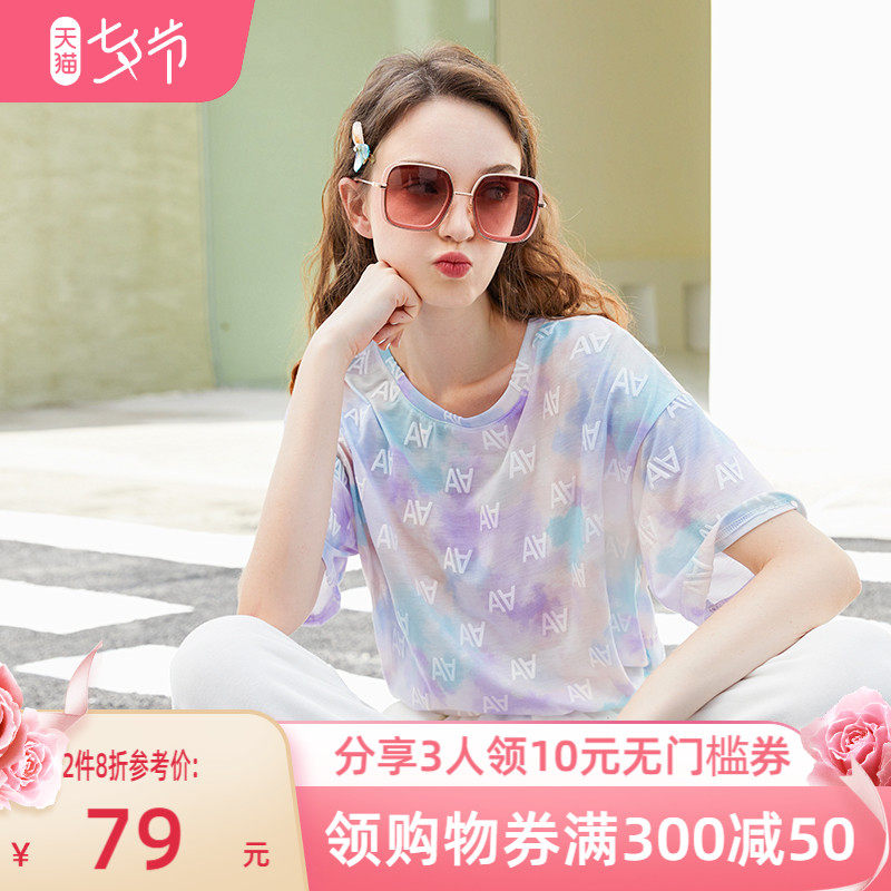 zk lin渐变扎染短袖宽松t恤女很仙的设计感小众高级感晕染上衣夏热门设计联盟服务商