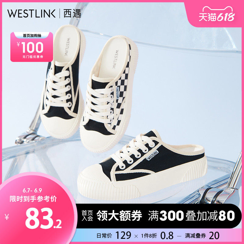 西遇帆布鞋女半拖鞋外穿2022年夏季新款设计感板鞋厚底休闲饼干鞋热门设计联盟服务商
