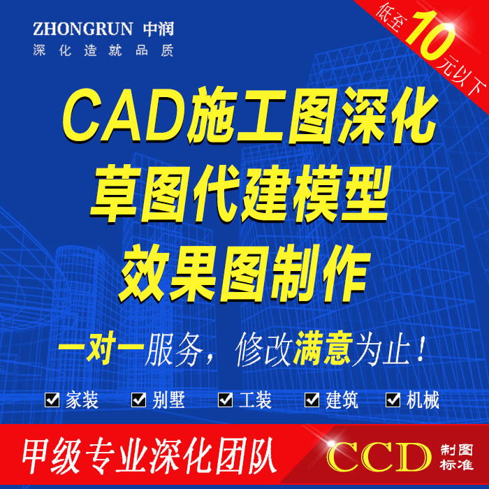 家装施工图深化CAD代做工装图纸代画制图草图大师SketchUp模型热门设计联盟服务商