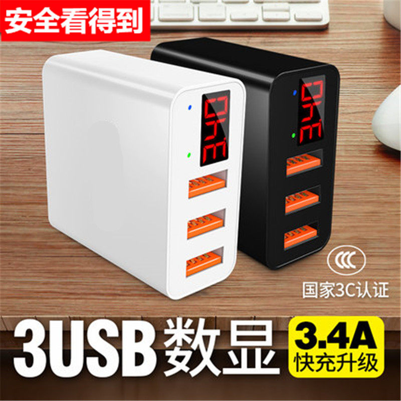 多口usb闪充华为插座3.4A智能手机平板安卓vivo oppo通用苹果12充电器快充5v3a充电宝旅充双头ios三口3充电头热门设计联盟服务商
