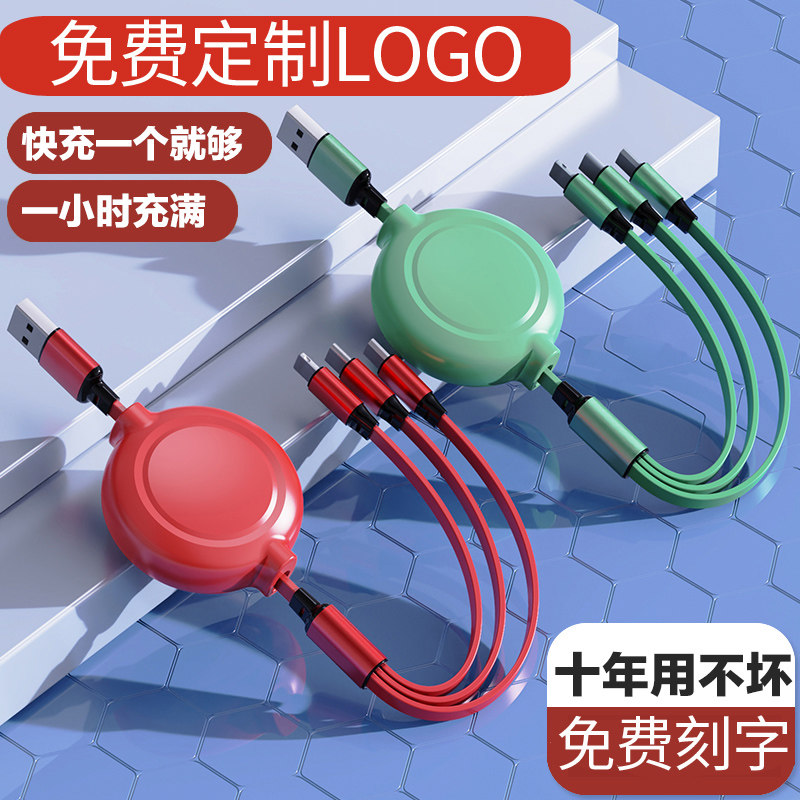 充电线一拖三数据线三合一伸缩多功能多头通用企业可定制LOGO小礼品一拖二合一收缩多口通用冲电车载usb车用热门设计联盟服务商