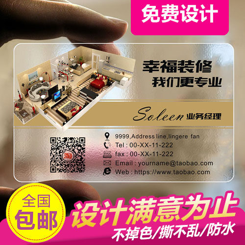 名片制作印刷免费设计包邮装修个性创意高档透明pvc磨砂卡订定制热门设计联盟服务商