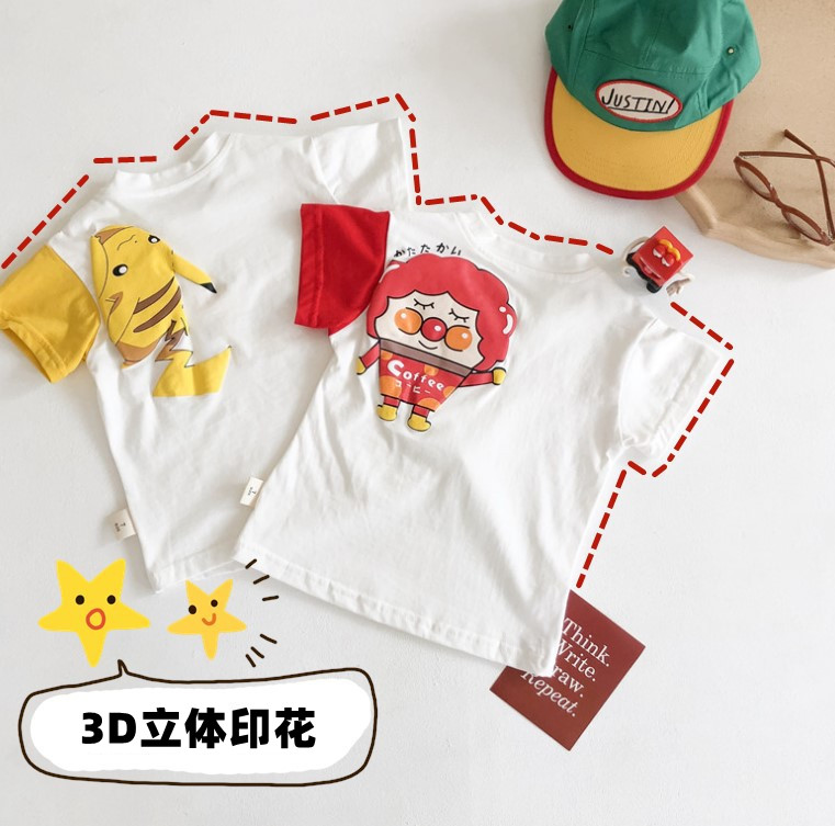韩国Ins夏季男女童3D立体印花半袖上衣卡通趣味短袖宝宝纯棉T恤热门设计联盟服务商