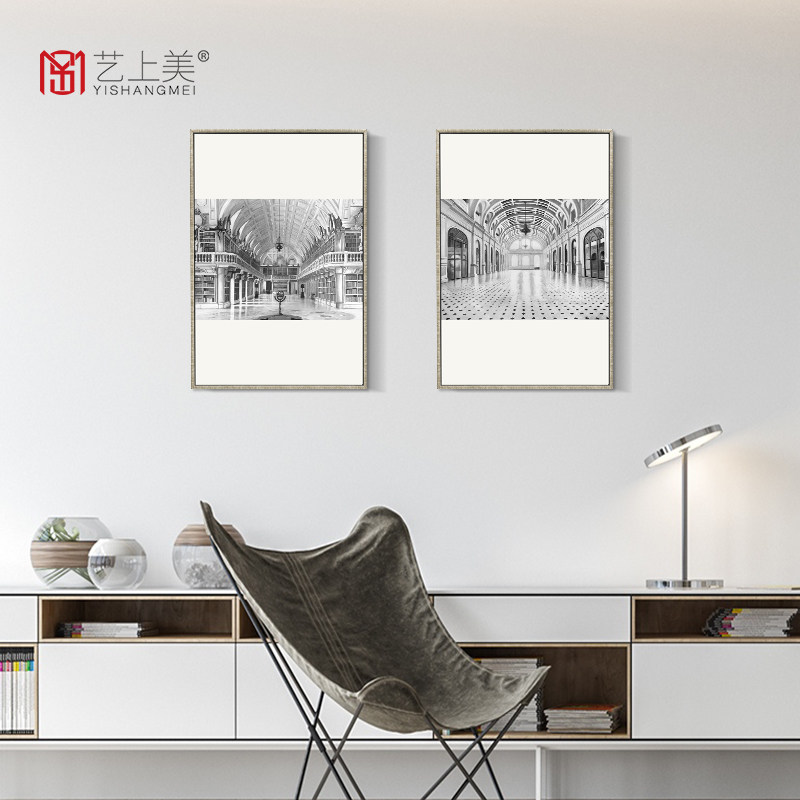 艺上美 现代简约北欧式客厅黑白建筑双联画书房办公室玄关装饰画热门设计联盟服务商