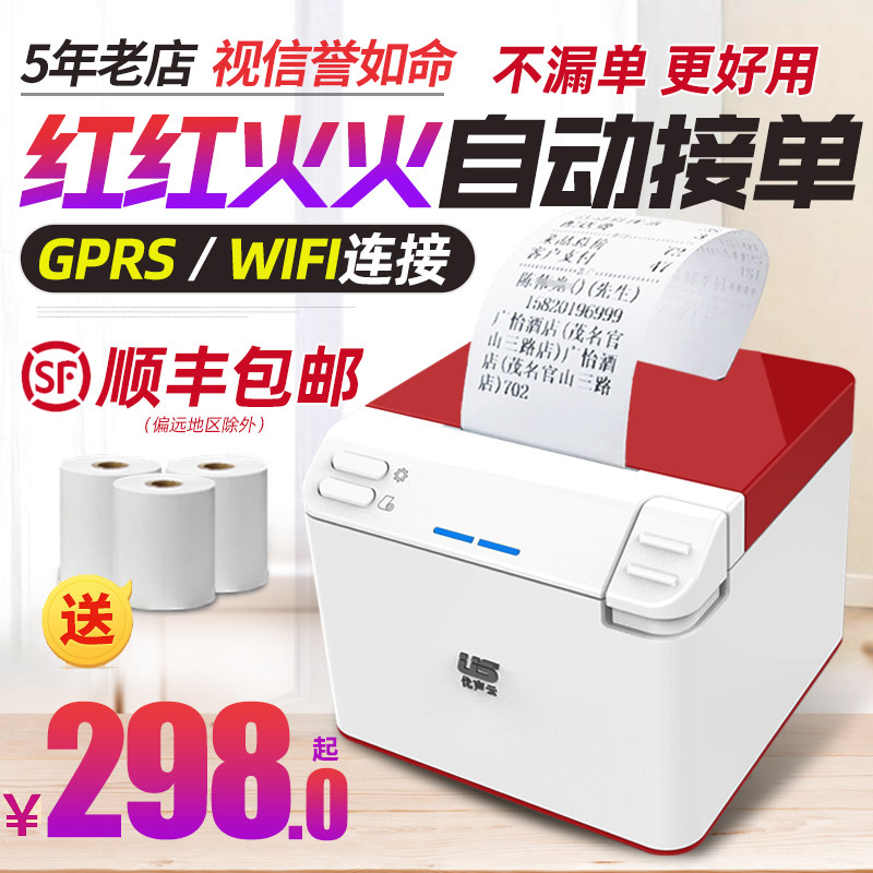 优声外卖打印机全自动接单美团饿了么神器热敏小票据WIFI飞蛾GPRS管家蓝牙餐饮商家小程序订单打印机热门设计联盟服务商