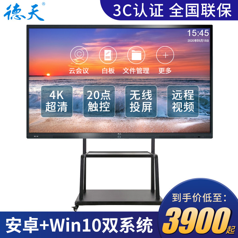 德天 55/65/85/100寸智能会议平板安卓触控一体机多媒体教学触摸交互电子白板远程视频办公培训大屏windows版热门设计联盟服务商