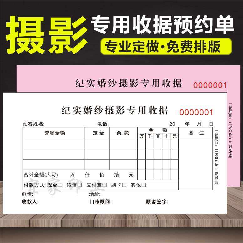 定制儿童摄影单收据印刷影楼预约单婚庆订单合同本二联婚纱租赁热门设计联盟服务商