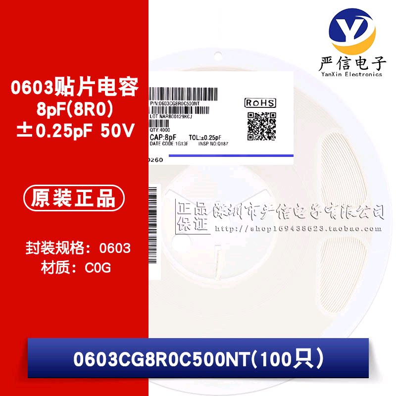 0603贴片电容 8pF(8R0)±0.25pF 50V 材质:C0G 0603CG8R0C500NT热门设计联盟服务商