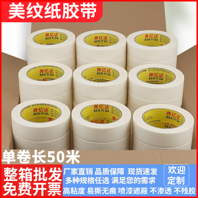 美纹纸胶带装修保护墙面无痕长50米美缝纸胶带易撕无痕不残胶婚房装饰工业喷漆遮蔽不渗透美纹纸胶带批发热门设计联盟服务商
