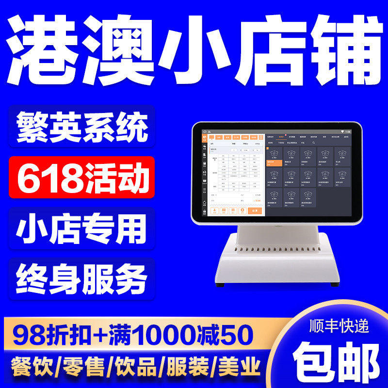繁体香港澳门台湾收银机一体机餐饮零售奶茶店英文pos点单机系统热门设计联盟服务商
