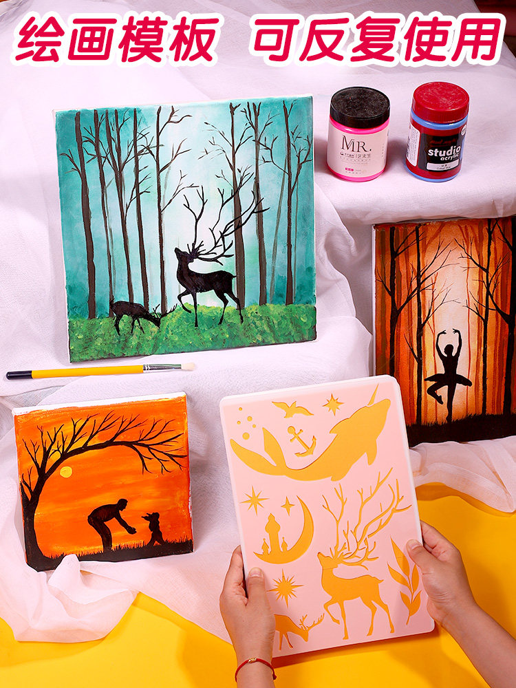 画画模板素艺同款镂空人物情侣绘画模版动物丙烯油画印模具套装热门设计联盟服务商