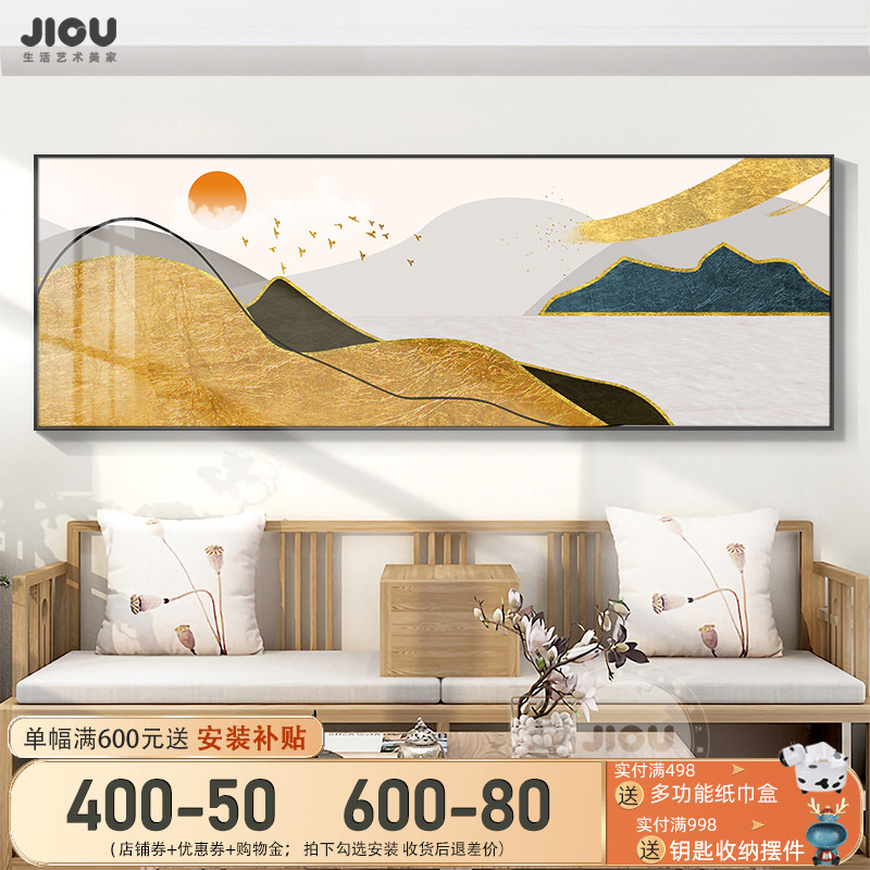 现代简约卡通山水装饰画沙发背景墙大气横幅挂画几何大雁横幅壁画热门设计联盟服务商
