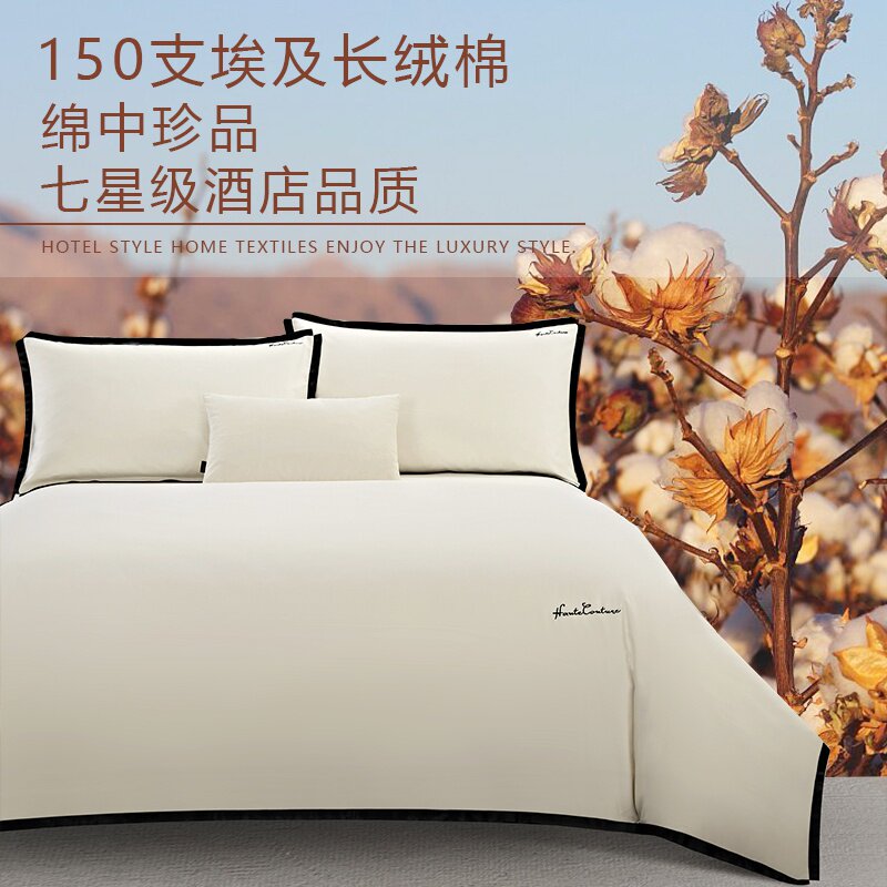 欧式纯棉150支埃及长绒棉纯色四件套全棉贡缎五星级酒店床上用品热门设计联盟服务商