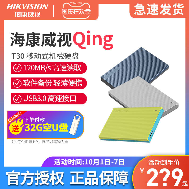 海康威视移动机械硬盘1T 2T高速usb3.0即插即用软件智能备份T30热门设计联盟服务商