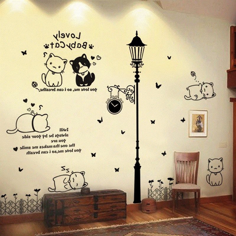 小可爱猫咪柜子装饰墙贴卧室温馨门贴画客厅宿舍装修自粘墙纸贴。热门设计联盟服务商