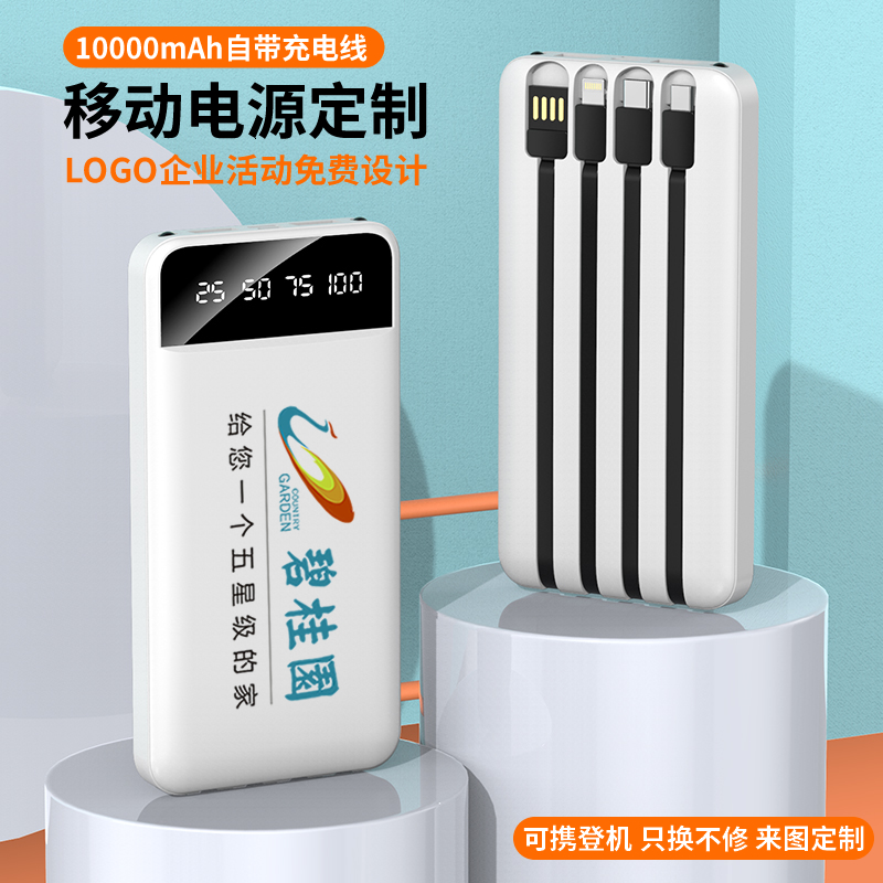 10000毫安移动电源手机充电宝带充电线定制设计logo印字企业公司年会开业活动图案订做礼品广告节日典礼宣传热门设计联盟服务商