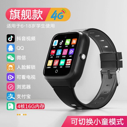 智能儿童电话手表学生4G全网通QQ微信支付宝自行下载软件插卡通话热门设计联盟服务商