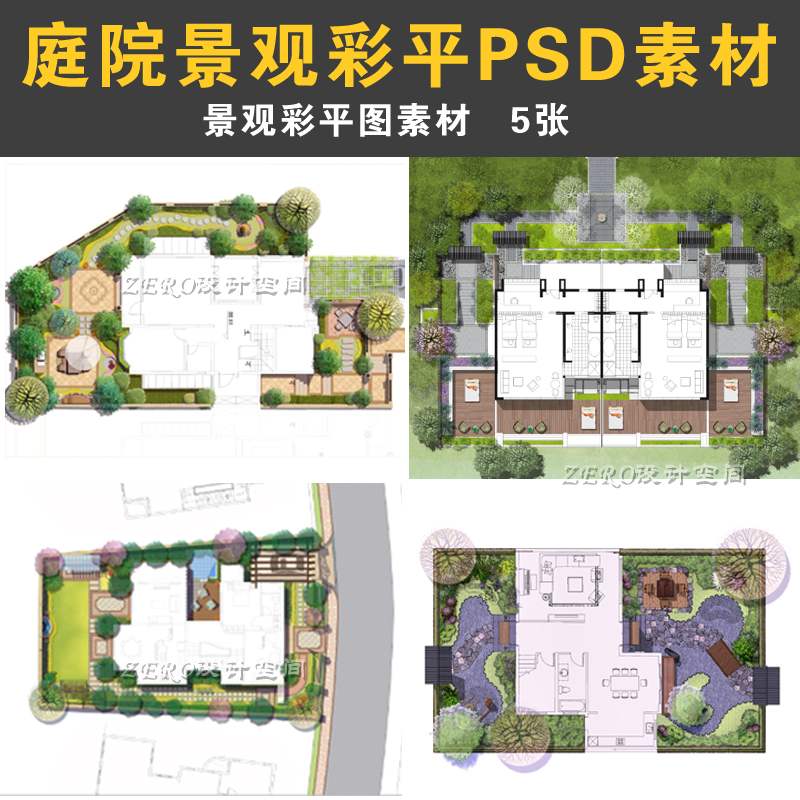 别墅庭院景观园林PS设计素材私家花园彩色平面图PSD源文件素材.热门设计联盟服务商