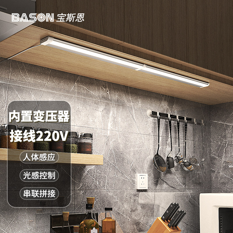 宝斯恩BASON 接线220v插电人体感应橱柜灯带超亮免安装鞋酒展柜底热门设计联盟服务商