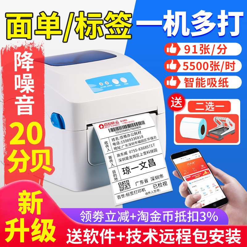 佳博GP1324D蓝牙快递单电子面单热敏打印机不干胶服装吊牌条码标签贴纸淘宝菜鸟物流邮政亚马逊小型打单机热门设计联盟服务商