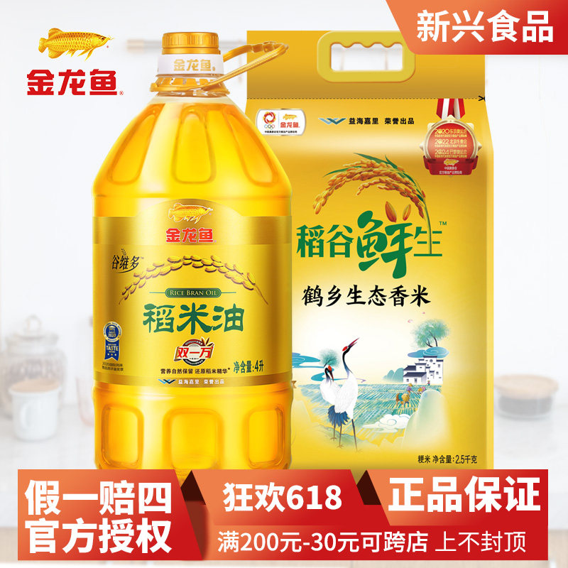 金龙鱼双一万稻米油4L+鹤乡生态香米2.5kg组合家用团购送礼佳品热门设计联盟服务商
