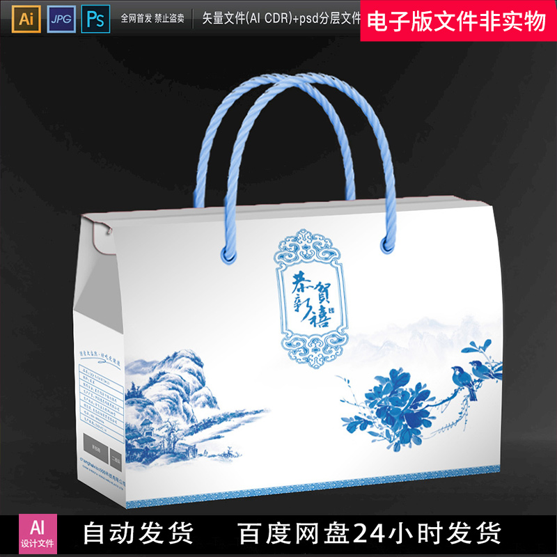 精美大气青花瓷手提包装礼盒图片包装设计包装盒设计包装素材模板热门设计联盟服务商