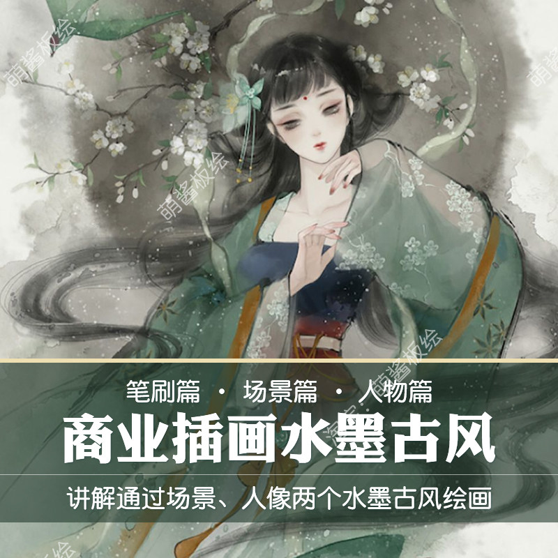 水墨古风商业插画板绘插画教程零基础CG原手绘动漫国朝厚涂线稿PS热门设计联盟服务商