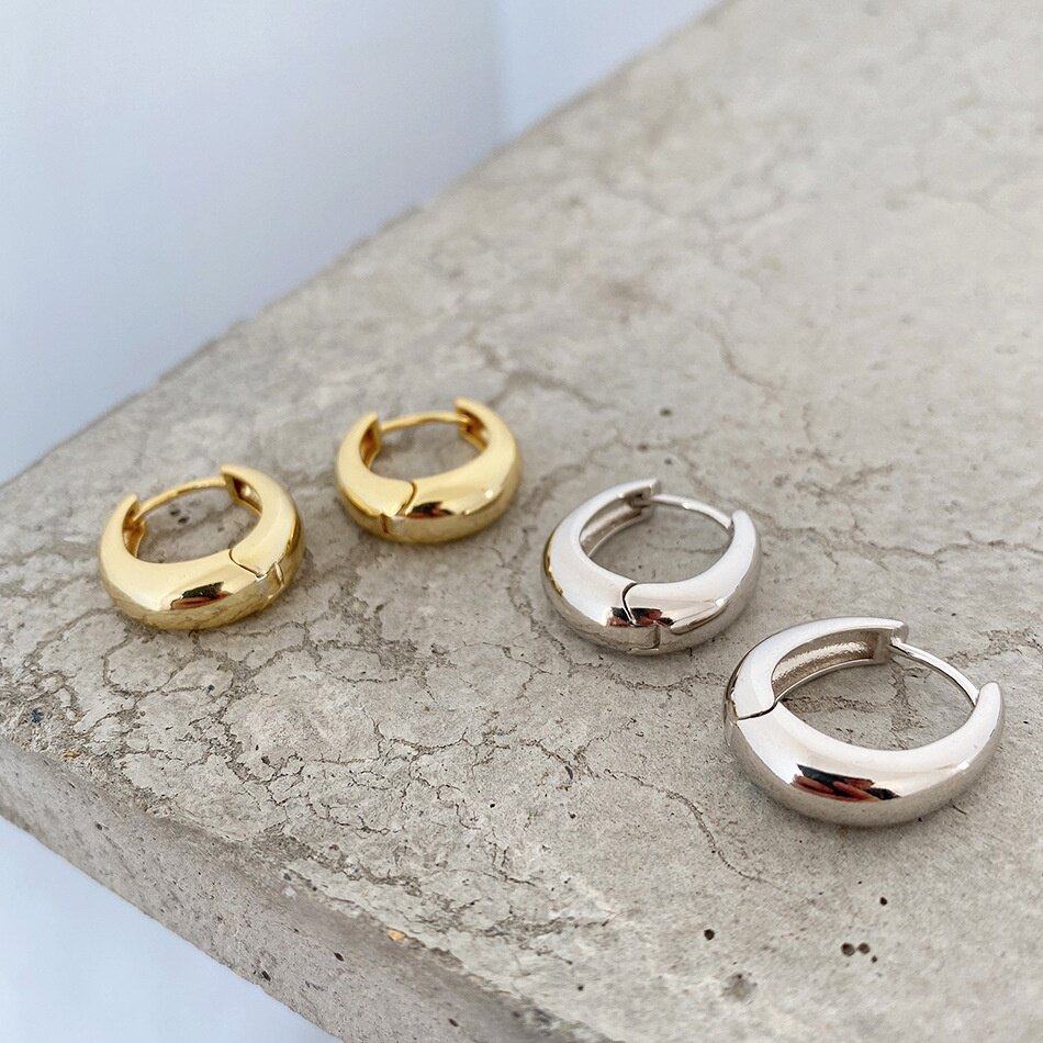 韩国简约气质耳饰 925纯银圆弧耳钉几何造型设计工业风宽版耳环热门设计联盟服务商
