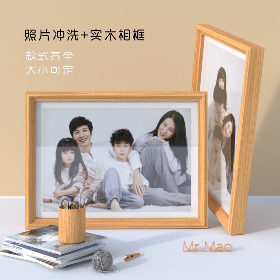 相框实木画框摆台简约结婚挂墙装饰全家福宝宝个人定订做照片热门设计联盟服务商