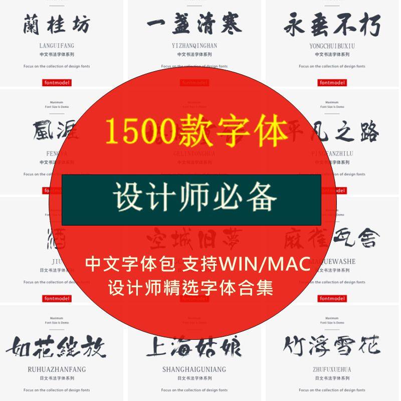 中英文毛笔书法字体库安装包AI美工沛广告cdr设计海报ps素材mac热门设计联盟服务商
