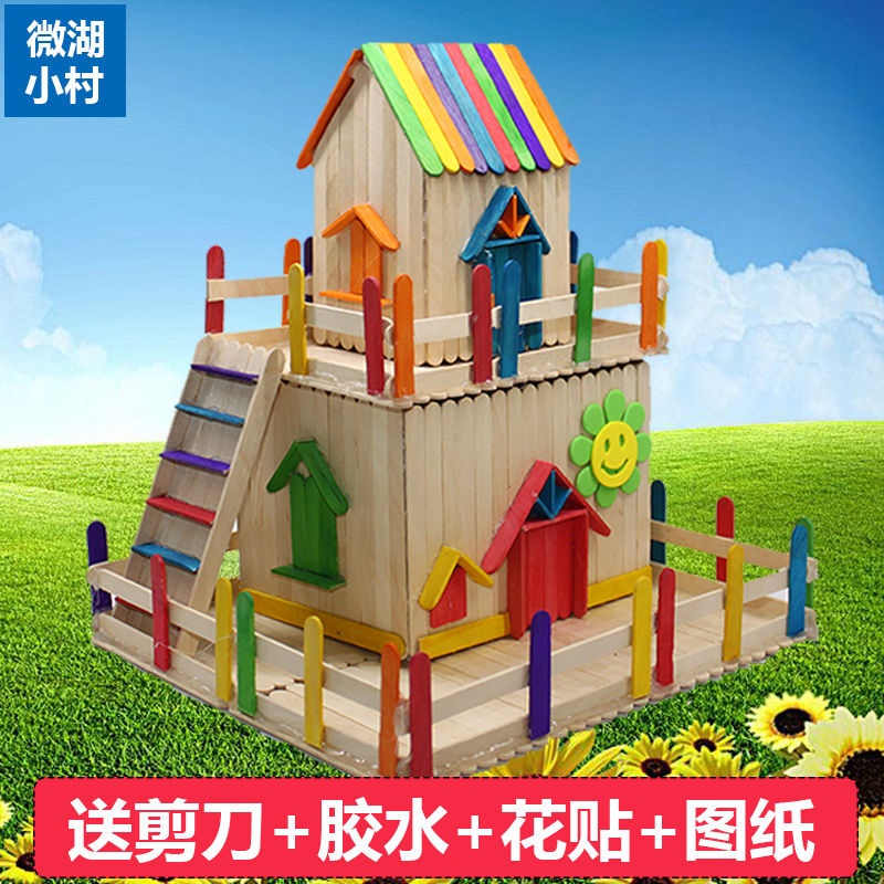 送剪刀胶水图纸雪糕棒儿童diy手工Y制作模型房子材料包益智拼装热门设计联盟服务商