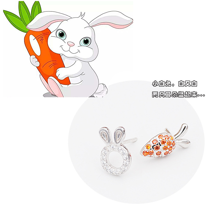 款打造S925通体纯银小白兔拔萝卜小耳钉 可爱减龄萌萌哒耳饰热门设计联盟服务商