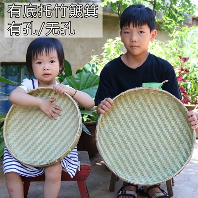 竹编簸箕无孔有孔竹筛子家用晾晒圆簸箕米筛绘画装饰纯手工竹制品热门设计联盟服务商