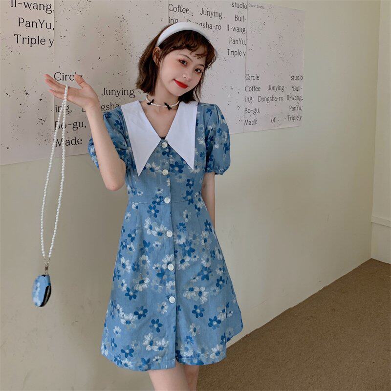 温柔系裙子减龄小个子连衣裙夏季2021新款法式碎花设计感短袖女装热门设计联盟服务商