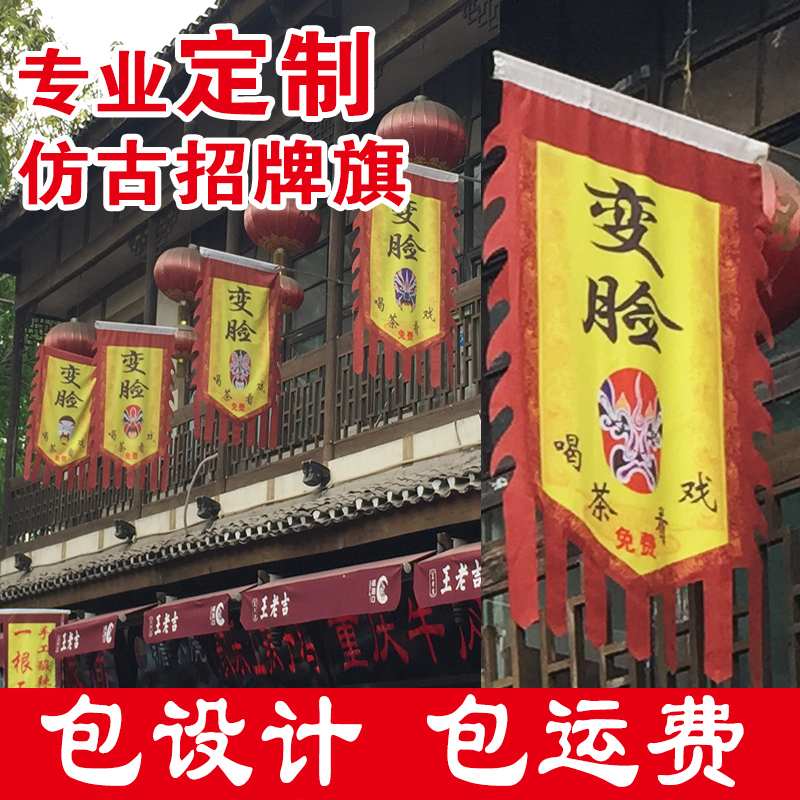 仿古旗帜定做影视复古广告彩旗制作三角龙旗仿古旗子定制招牌旗子热门设计联盟服务商