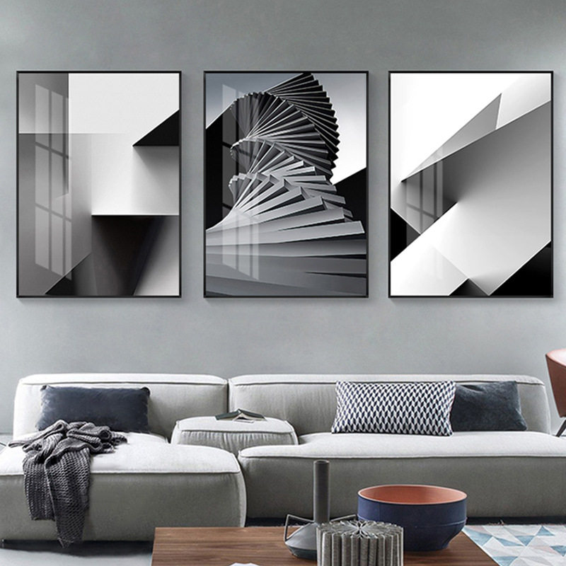 现代简约黑白建筑空间装饰画客厅挂画设计师工业风书房办公室壁画热门设计联盟服务商