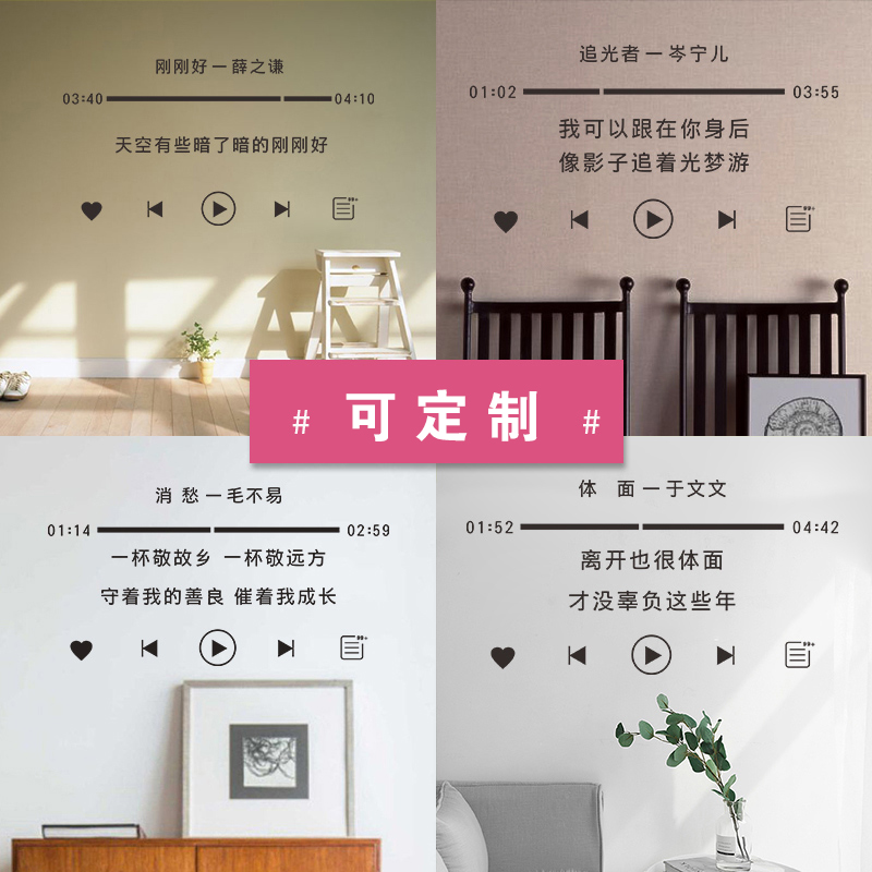 网红奶茶餐厅房间装饰北欧ins风歌词贴纸家居少女心墙面文字墙贴热门设计联盟服务商