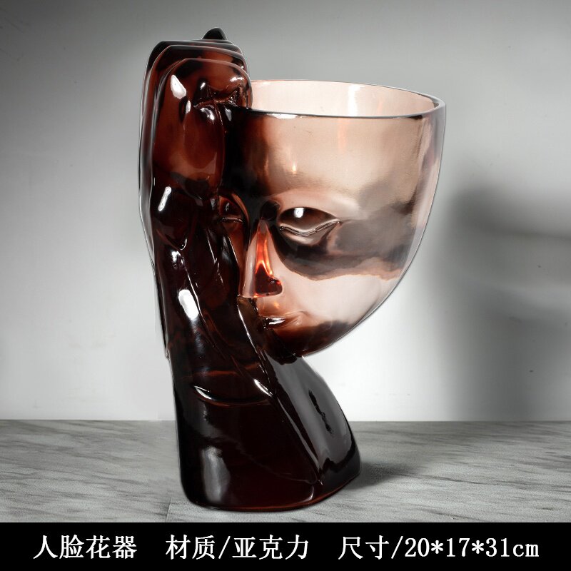 现代轻奢样板间客厅托盘摆件人脸花器酒店会所前台玄关树脂装饰品热门设计联盟服务商