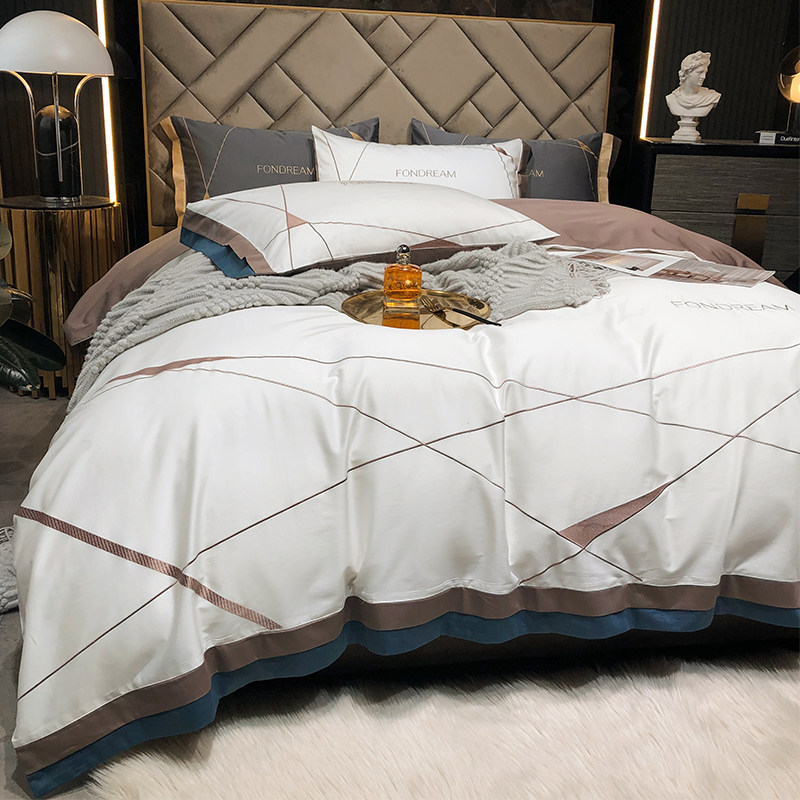 五星级轻奢酒店风120s长绒棉四件套全棉纯棉简约刺绣被套床上用品热门设计联盟服务商