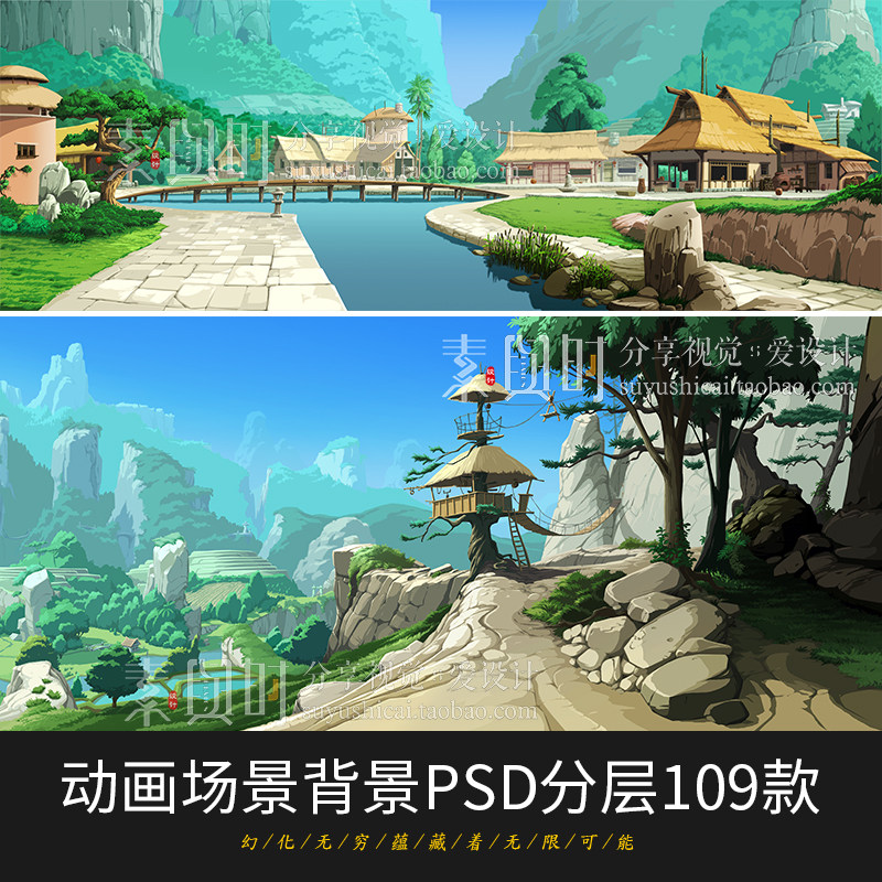 PSD动画场景背景 卡通动漫背景插画漫画CG室外丛林游戏美术资源热门设计联盟服务商