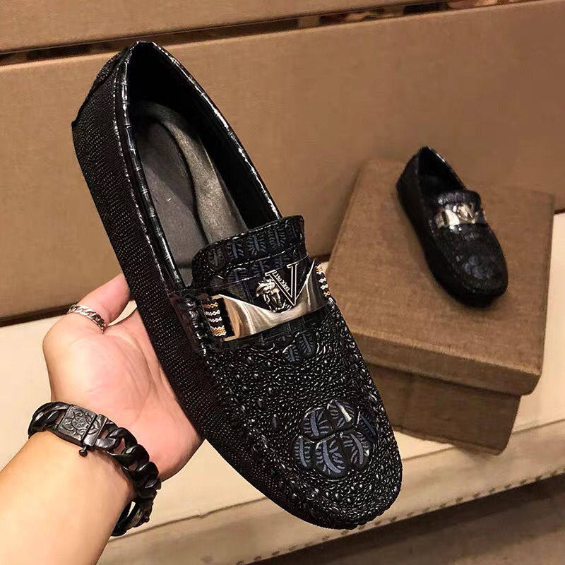 欧洲站高端奢侈款鳄鱼纹透气豆豆鞋男士真皮韩版潮流英伦鞋子男热门设计联盟服务商