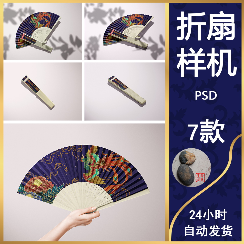 315中式古风文创设计提案样机竹扇折扇绸扇面印花图案vi贴图素材热门设计联盟服务商