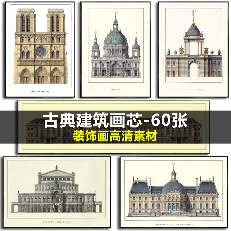 美式欧式古典复古怀旧经典建筑工业风发黄装饰画画芯高清素材图库热门设计联盟服务商
