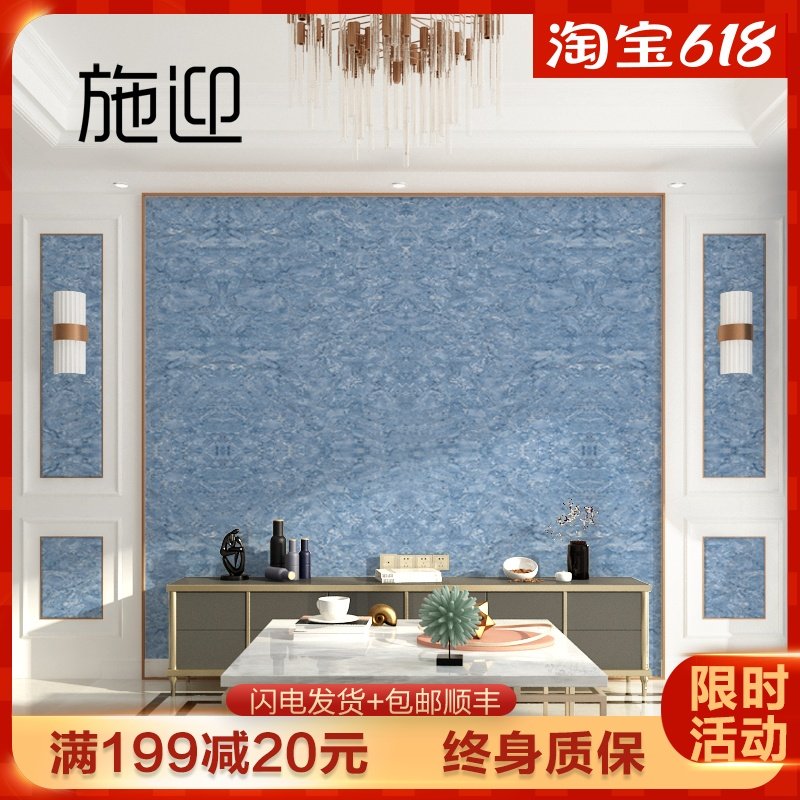 蓝色大理石纹背景墙壁纸现代简约墙纸客厅影视墙装饰壁画无缝墙布热门设计联盟服务商
