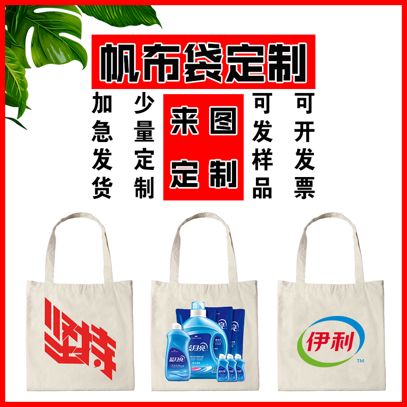 帆布袋定制单肩帆布包布袋礼品印logo图案手拎环保购物袋广告宣传热门设计联盟服务商