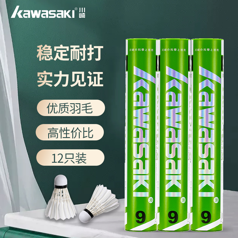 川崎Kawasaki专业羽毛球 体育比赛训练耐打9号球 77速12只装热门设计联盟服务商
