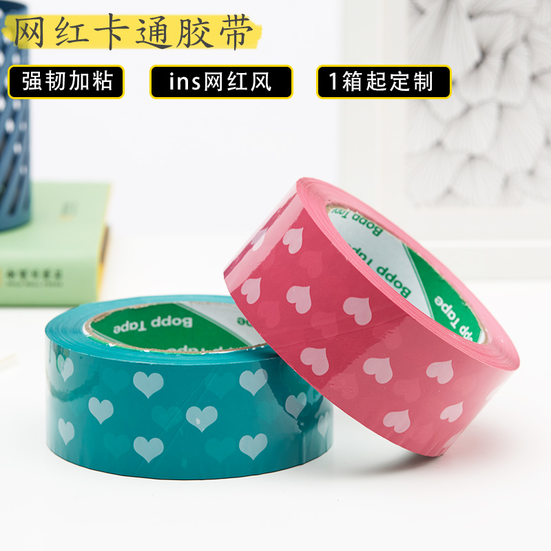 卡通爱心粉色胶布淘宝打包快递大卷封箱胶带加厚家用封口胶纸热门设计联盟服务商