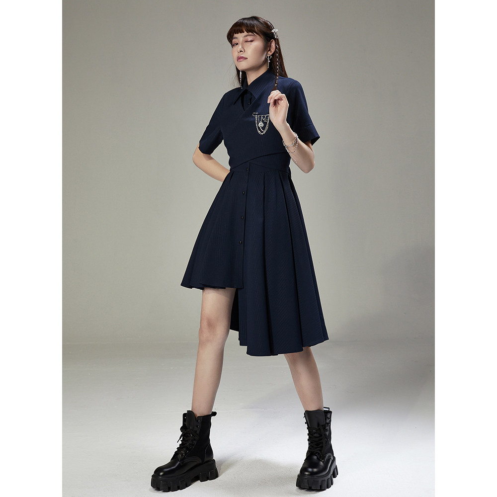 UNDORABLE原创设计师小众 学院风polo衬衫裙不规则收腰修身连衣裙热门设计联盟服务商