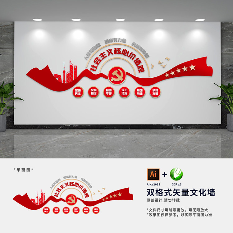 核心价值观党建文化墙活动室长廊走廊室外雕刻雕塑形象AI+CDR素材热门设计联盟服务商